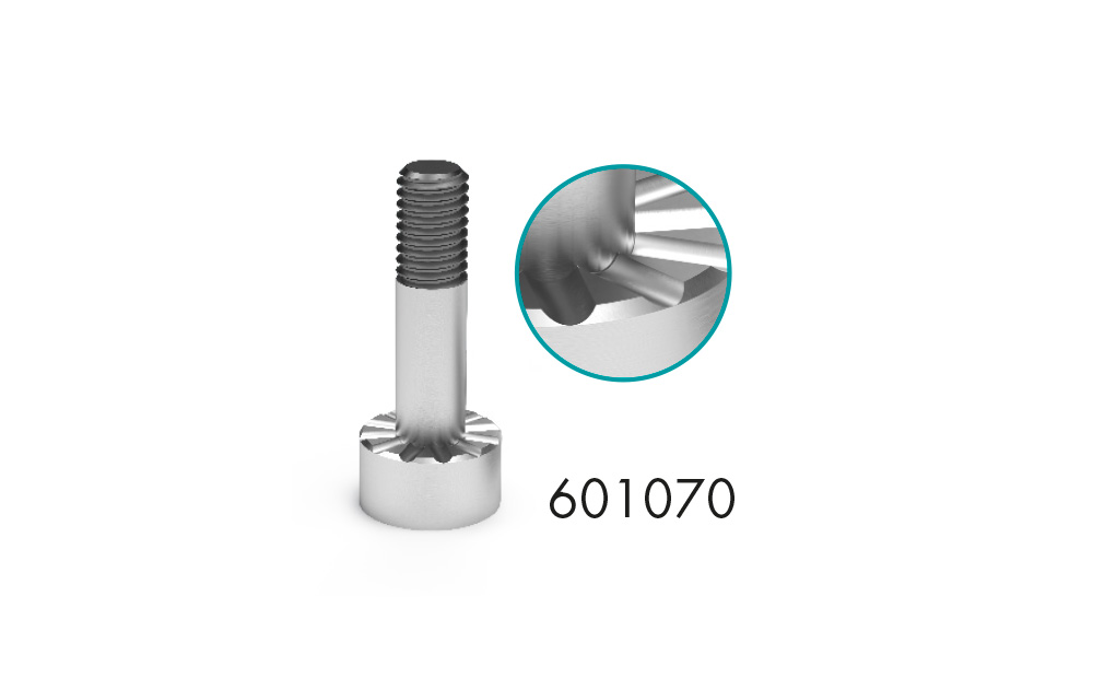 Denne type mærkestempel er en kort variant. Den monteres i et gevindhul fra forsiden af kaviteten. Denne type mærkestempel bruger pileindsatse af typen 601070.