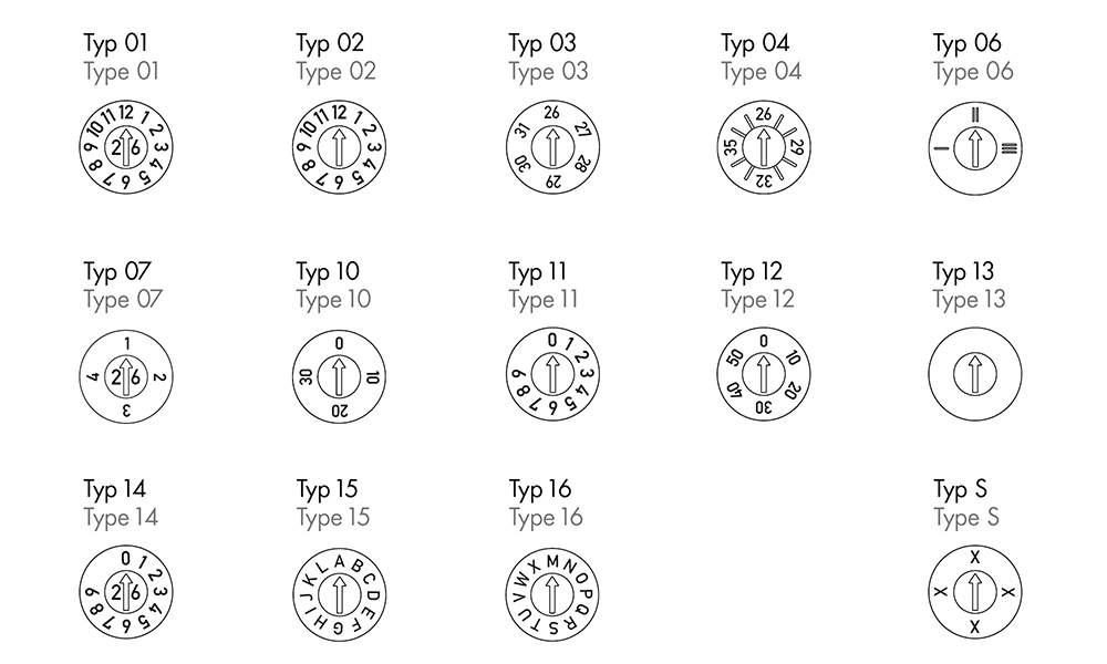 Vores mærkestempler fås i et stort udvalg af typer med forskellig gravering. De finder blandt andet de klassiske udgaver med månedsangivelse i yderringen og årstal i den udskiftelige pileindsats. I billedgalleriet finder du oversigten over de forskellige typer graveringer, som også fremgår i produkttabellen herunder.